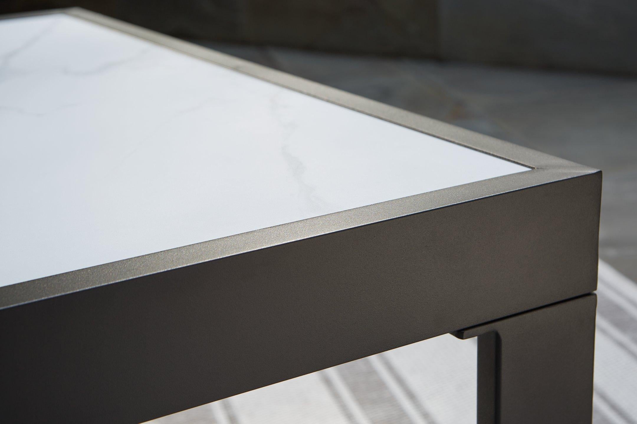 Sleek, contemporary style meets outdoor living in this outdoor package. Its clean-lined black aluminum frames and resin wicker backs expertly balance good looks and longevity. And the enhanced UV resistance of Nuvella+™ fabric keeps the cushions light and bright, weathering the seasons beautifully. With this set on the back porch or poolside, you can confidently curate a luxe vibe.