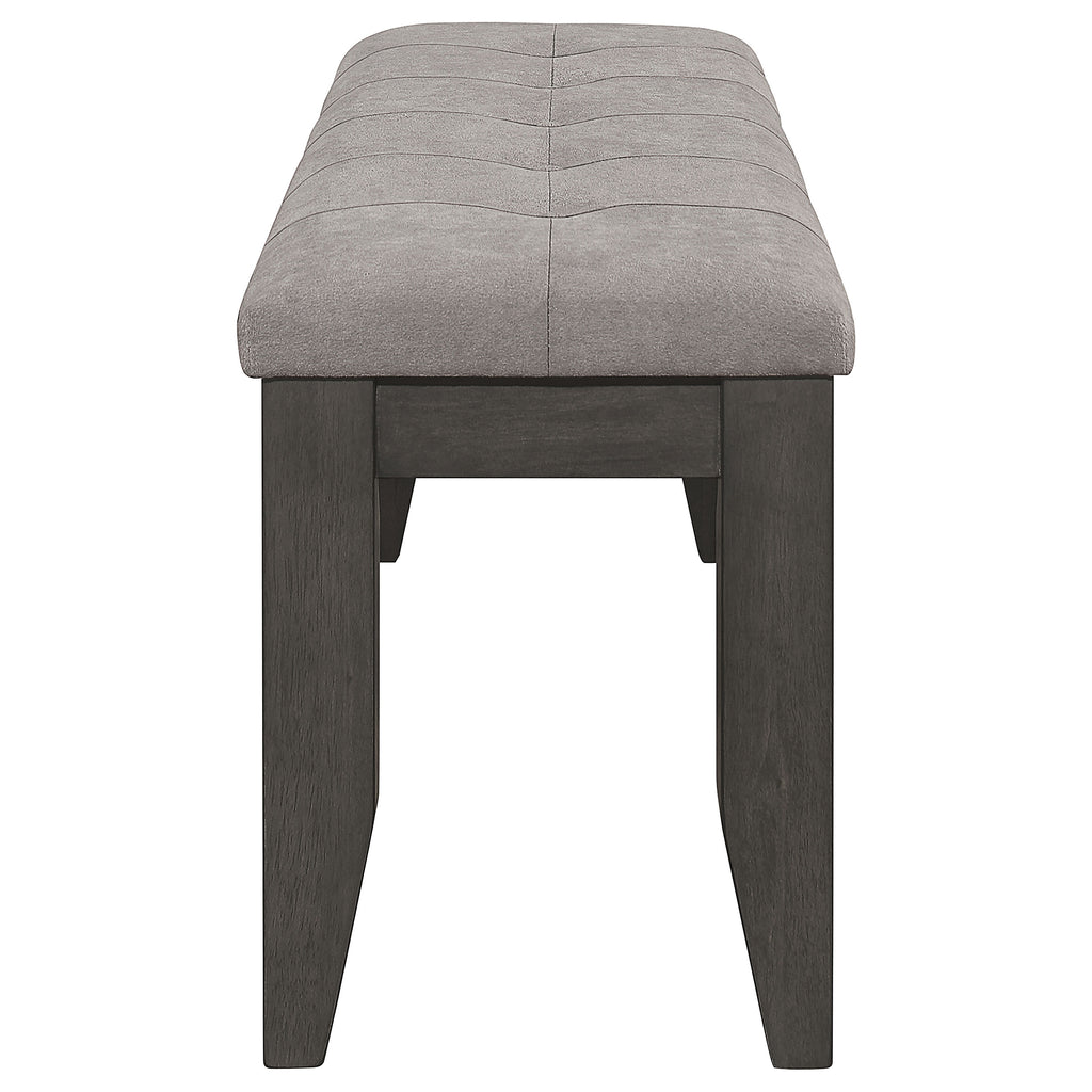 A versatile addition to any dining space, this dining bench offers both stylish seating and space-saving functionality. The solid rubberwood frame provides lasting durability, while the padded seat ensures comfort. A button-tufted design adds a sophisticated touch, while the sturdy legs provide reliable support. Designed for casual and formal dining spaces alike, this bench is perfect for families, guests, or everyday use, and easily tucks under the table when not in use. Key Features: • Stylish dining bench offers space-efficient seating for any dining room • Warm cappuccino finish enhances its classic and versatile aesthetic • Padded seat upholstered in black faux leather for a refined, modern feel • Solid rubberwood construction ensures strength and durability for daily use • Button-tufted detailing adds a sophisticated and elegant touch to the seat • Compact design allows for easy storage beneath the table when not in use