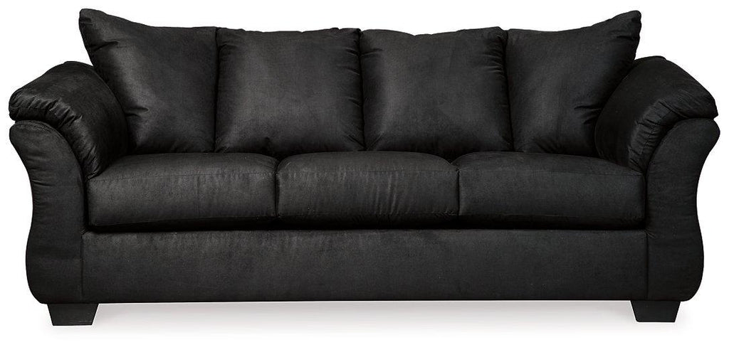 Talk about fine lines and great curves. That’s the beauty of this standout sofa—made to suit your appreciation for clean, contemporary style. A striking flared frame, comfy pillow top armrests and an ultra-soft upholstery that holds up to everyday living complete this fashion statement..