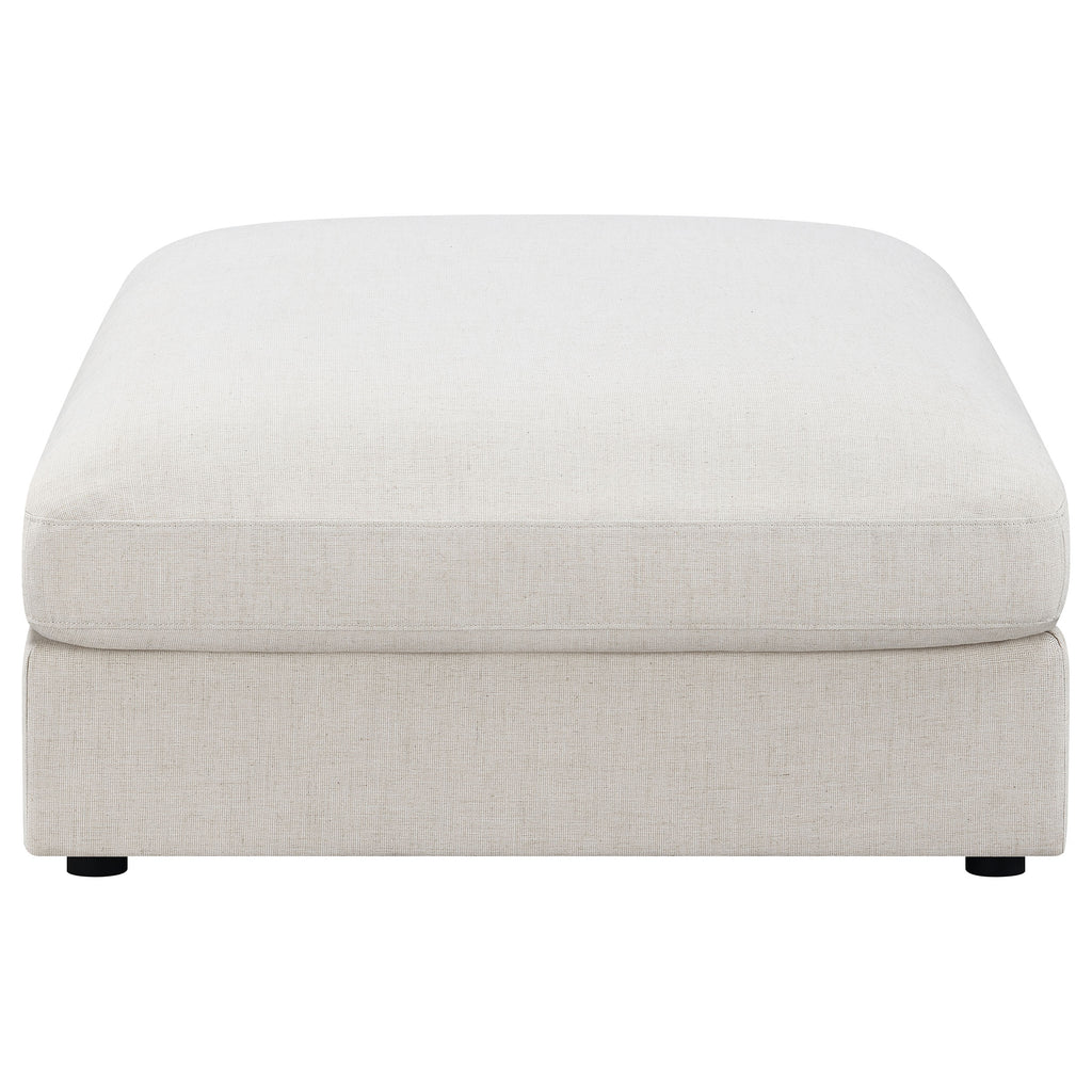 Complete your living room with this versatile ottoman, designed to blend seamlessly with modular setups or stand out on its own. Wrapped in a beige linen-blend fabric, its clean silhouette and plush top offer lasting comfort and contemporary style. Crafted with quality materials, this piece is built to support your lounging needs with refined simplicity. Key Features: • Contemporary ottoman designed to complement any modern living space • Upholstered in beige linen-blend fabric for a crisp, clean look • Modular functionality lets you configure it with matching pieces • Foam-filled cushion ensures supportive comfort for lounging • Crafted from engineered wood, larch, and finished with black plastic legs • Removable cushion design adds convenience for cleaning and care