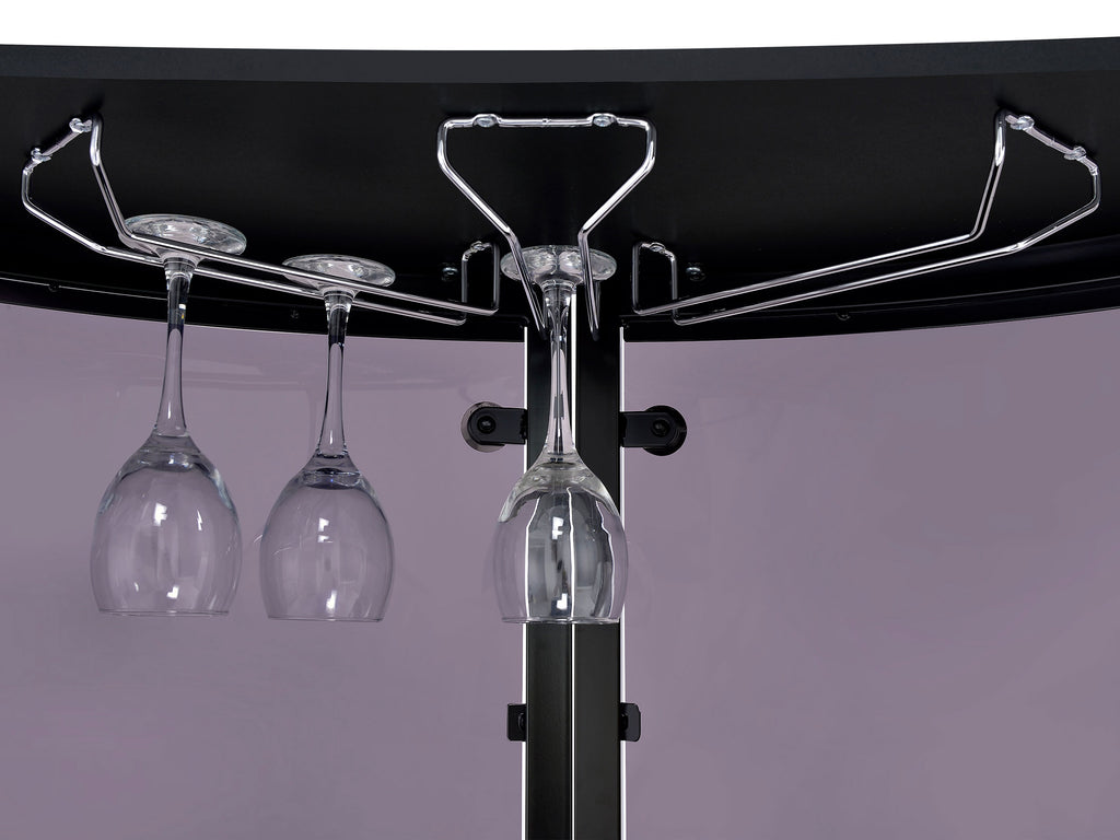Upgrade your home entertainment options with this gorgeous, contemporary bar unit. With a convenient wine glass rack and ample storage space, it easily accommodates a wide variety of stemware, bar accessories, and cocktail ingredients. Graceful and glamorous, its curved silhouette is beautifully accentuated with gleaming chrome accents. A large, tempered glass top gives you plenty of prep space to mix delicious drinks for your guests. Complete with clear acrylic panels, this stylish unit allows you to show off your collection of fine wines and spirits in style. Key Features: • Freestanding home bar with curved frame and contemporary white finish • Clear tempered glass top and shelf offer strength and a polished presentation • Chrome-finished metal support adds brightness and visual balance • Integrated stemware rack and open shelving for barware and bottles • Clear acrylic panels create a sleek enclosure while keeping items visible • Built with acrylic, tempered glass, engineered wood, and chrome-plated steel
