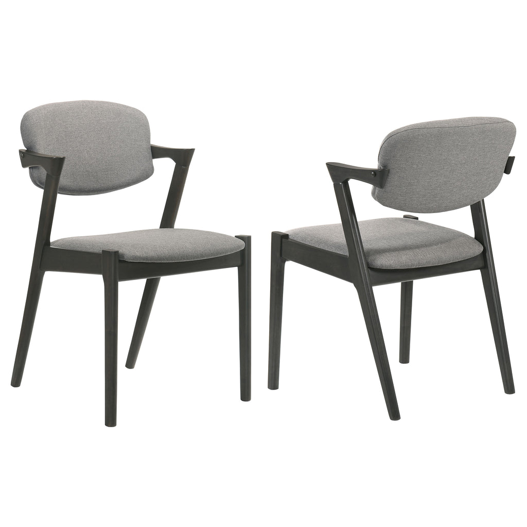 Choose from the best with this sophisticated mid-century modern Z-chair, designed to bring clean lines and dramatic angles into your home. Upholstered in a richly toned fabric, the padded backrest and seat provide a comfortable place to rest, whether you're dining or relaxing in the living room. The sturdy frame, crafted from solid hardwood, features a smooth finish that contrasts beautifully with the fabric upholstery, while sharp armrests and an independent, hovering seat back add a contemporary flair. With acutely angled back legs and straight front legs, this chair showcases a striking, rebellious silhouette that makes a bold statement. Perfect for pairing with a modern dining table or using as a stylish accent, this chair combines classic design with cutting-edge style. Key Features: • Mid-century modern Z-chair with clean lines and bold angles • Richly toned fabric upholstery offers a comfortable, padded seat and backrest • Solid hardwood frame with a sleek, contrasting finish • Sharp armrests and hovering seat back add a contemporary touch • Unique silhouette with acutely angled back legs and straight front legs • Ideal for dining rooms, living spaces, or as a versatile accent chair