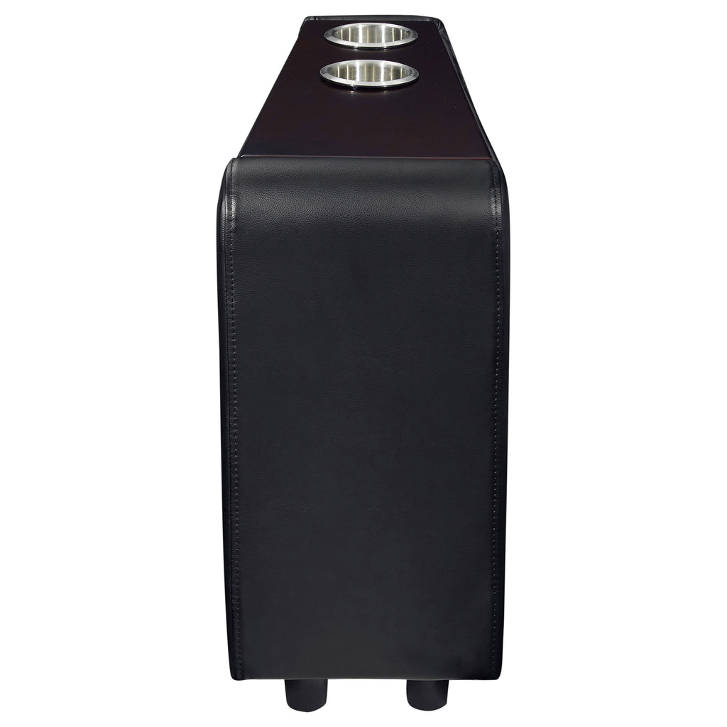 Transform your living room into a cinematic retreat with this modern home theater seating collection. Upholstered in smooth black leatherette, each push back recliner offers plush headrests, supportive armrests, and pocket coil seating with a cool gel memory foam topper for lasting comfort. Removable stainless steel cupholders built into the wedge consoles provide convenience and easy maintenance. Sleek stitching details and a tailored silhouette add contemporary refinement, while sturdy construction ensures durability for years of entertainment._x005F_x000D_ Key Features: • Three push back recliners in black leatherette with modern home theater design • Plush headrests and padded armrests enhance relaxation during long viewings • Pocket coil seating with gel memory foam topper provides superior comfort • Two wedge consoles connect recliners seamlessly into a theater-style layout • Removable stainless steel cupholders offer convenience and easy maintenance • Crafted with foam, hemlock, metal, and plastic for lasting strength and support